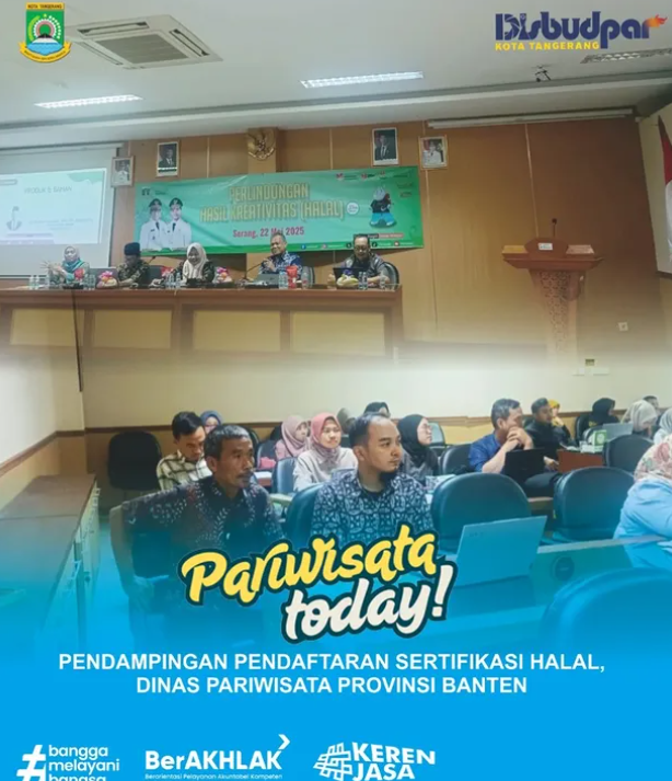 23 May 2025 12:45 Para Finalis Kang Nong Kunjungi Pusat Pemerintahan Kota Tangerang Read More 22 May 2025 13:36 Disbudpar Kota Tangerang Dampingi Pelaku Usaha Daftar Sertifikasi Halal, Dorong Produk Lokal Makin Kompetitif Read More 22 May 2025 13:34 Disbudpar Kota Tangerang Gelar Pelatihan Standar Usaha Kafe dan Restoran untuk Tingkatkan Daya Saing Kuliner Read More 21 May 2025 13:30 Finalis Kang Nong Kota Tangerang Kunjungi Tangerang Live Room, Kenali Inovasi Layanan Publik Kota Read More 20 May 2025 13:27 Disbudpar Kota Tangerang Gelar Lomba Foto Cagar Budaya dalam Festival Literasi dan Mookervaart 2025 Read More 17 May 2025 11:44 Disbudpar Kota Tangerang Gelar Pelatihan Standar Usaha untuk Café, Restoran, dan Rumah Makan Read More 15 May 2025 11:42 Disbudpar Kota Tangerang Gelar Edukasi Inovasi Botol Plastik di SMAN 12 Kota Tangerang dalam Program P5 Read More 15 May 2025 11:36 Disbudpar Kota Tangerang Selenggarakan Pelatihan Kebersihan Perhotelan, Siapkan SDM Unggul di Bidang Hospitality Read More 15 May 2025 11:34 Disbudpar Kota Tangerang Gelar Lomba Qasidah Semarakkan Festival Literasi dan Mookervaart 2025 Read More 14 May 2025 11:31 Disbudpar Kota Tangerang Gelar Pelatihan Standar Usaha Kafe, Rumah Makan, dan Restoran Read More 14 May 2025 11:27 Disbudpar Kota Tangerang Gelar Pelatihan Pramusaji, Buka Peluang Tingkatkan Kompetensi Generasi Muda Read More 11 May 2025 11:25 Pemilihan Kang Nong Terfavorit Dibuka, Masyarakat Kota Tangerang Diajak Berikan Dukungan Read More 09 May 2025 11:21 Finalis Kang Nong Kota Tangerang Jalani Pembekalan dan Latihan Tari Menjelang Malam Penobatan Read More 08 May 2025 11:16 Kontingen Budaya Kota Tangerang Curi Perhatian di Apeksi VII Surabaya Read More 06 May 2025 09:09 KOTA TANGERANG SIAP PENTAS DIPANGGUNG NASIONAL APEKSI SURABAYA 2025 Read More 04 May 2025 10:57 DIALOG BERSAMA SENIMAN DAN MUSISI KOTA TANGERANG Read More 04 May 2025 07:30 KERJA BAKTI SEPANJANG KALI SIPON Read More 03 May 2025 10:57 Pra Karantina Kang Nong Kota Tangerang 2025 Resmi Dimulai Read More 01 May 2025 10:48 TANAM POHON BERSAMA HIMPUNAN MAHASISWA PARIWISATA Read More 30 Apr 2025 10:42 Disbudpar Kota Tangerang Gelar Halal Bihalal Bersama Pegiat Seni Budaya dan Tradisi Read More 21 Apr 2025 10:24 PELAJAR PERINGATI HARI KARTINI DI TAMAN TEMATIK KOTA TANGERANG Read More 02 Apr 2025 10:17 WISATA KANO LIBUR LEBARAN 2025 Read More 25 Mar 2025 10:09 BABAT RUMPUT UNTUK SOLAT IED, GRATIS! Read More 18 Mar 2025 10:01 ASURANSI POHON TUMBANG BAGI WARGA TANGERANG Read More 09 Mar 2025 09:56 GRAND FINAL PEMMILIHAN CIDE DAN KODE BENTENG Read More 25 Feb 2025 09:38 Jakarta Premium Outlets - Tangerang Read More 24 Feb 2025 09:38 JASA PARIWISATA PADA BULAN SUCI RAMADHAN 1446H/2025 Read More 18 Feb 2025 17:30 PREPARE YOURSELF FOR PEMILIHAN KANG NONG KOTA TANGERANG 2025! Read More 25 Jan 2025 18:54 DISBUDPAR KOTA TANGERANG SIAGAKAN 330 PETUGAS DI TAMAN KOTA SELAMA LIBUR PANJANG Read More 01 Jan 2025 00:01 TAHUN BARU 2025 Read More 06 Dec 2024 10:46 WISATA PERAHU KANO SPESIAL EVENT AKHIR TAHUN 2024 Read More 21 Nov 2024 10:23 OFFICIAL LOGO DISBUDPAR Read More 12 Nov 2024 10:06 PENGAJUAN PANGKAS POHON DIKOTA TANGERANG Read More 10 Nov 2024 10:20 WISATA PERAHU KANO Read More 03 Nov 2024 10:01 LOMBA TARI KREASI TRADISIONAL NUSANTARA 2024 Read More 03 Nov 2024 09:53 LOMBA PENCAK SILAT FESTIVAL BUDAYA 2024 Read More 02 Nov 2024 09:41 LOMBA QASIDAH FESTIVAL BUDAYA TAHUN 2024 Read More 01 Nov 2024 09:47 LOMBA BACA PUISI FESTIVAL BUDAYA 2024 Read More 20 Oct 2024 09:55 WASPADA POHON TUMBANG Read More 27 Sep 2024 11:01 Ayo Wujudkan Kota Tangerang sebagai Smart City yang Lebih Baik! Read More 21 Sep 2024 10:03 PROSESI 12 TAHUNAN GOTONG TOAPEKONG 2024 Read More 07 Aug 2024 09:36 LOMBA FOTO PONSEL CAGAR BUDAYA KOTA TANGERANG Read More 20 Jul 2024 17:52 FESTIVAL CISADANE 2024 KOTA TANGERANG Read More 17 Jul 2024 17:54 LOMBA TARI NANDAK 2024 KOTA TANGERANG Read More 05 Apr 2024 09:09 PELAYANAN BABAT RUMPUT Read More 27 Mar 2024 09:13 AUDISI GITA BAHANA NUSANTARA KOTA TANGERANG 2024 Read More 17 Mar 2024 09:16 WISATA PERAHU KANO BUKA DIBULAN RAMADAN Read More 06 Mar 2024 09:20 ATURAN JAM BUKA RUMAH MAKAN DAN PENGHENTIAN SEMENTARA TEMPAT JASA USAHA HIBURAN UMUM Read More 15 Feb 2024 12:22 ASURANSI POHON TUMBANG Read More 22 Dec 2023 22:00 FESTIVAL CISADANE KOTA TANGERANG 2023 Read More 11 Dec 2023 15:28 FESTIVAL BUDAYA KOTA TANGERANG TAHUN 2023 Read More 14 Oct 2023 15:30 FESTIVAL MOOKERVAART KOTA TANGERANG 2023 Read More 27 Sep 2023 10:58 FESTIVAL MAULID KOTA TANGERANG Read More 30 Aug 2023 21:00 WISATA KANO Read More 23 Aug 2023 09:00 SOSIALISASI CAGAR BUDAYA KOTA TANGERANG Read More 21 Jul 2023 09:36 FESTIVAL PEH CUN KOTA TANGERANG 2023 Read More 07 Jul 2023 18:00 GRAND FINAL PEMILIHAN KANG NONG KOTA TANGERANG 2023 Read More 16 May 2023 14:01 Lomba Vlog HUT RI ke-77 Read More 03 May 2023 12:45 Audisi Gita Bahana Nusantara 2023 Kota Tangerang