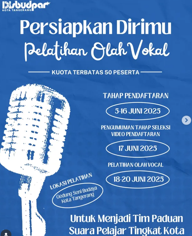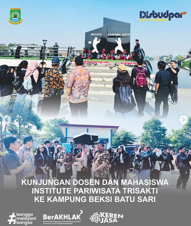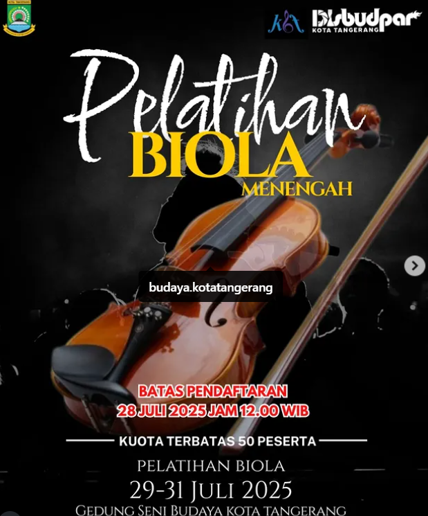 25 Jul 2025 13:55 Disbudpar Kota Tangerang Kolaborasi dengan Kemenparekraf dan LSP Maestro Indonesia Gelar Sertifikasi Kompetensi Bidang Gastronomi Read More 23 Jul 2025 13:52 Asah Kemampuan Bermain Biola di Pelatihan Biola Tingkat Menengah Kota Tangerang! Read More 22 Jul 2025 13:45 Pelatihan Fotografi Gratis, Yuk Asah Kemampuanmu di Gedung Seni Budaya Kota Tangerang! Read More 21 Jul 2025 13:44 Disbudpar, DPU, dan Kominfo Kota Tangerang Bersinergi Siapkan Partisipasi dalam Bhumandala Award 2025 Read More 18 Jul 2025 13:40 Hotel Santika Regional Tangerang Kolaborasi dengan DLH, Bank Sampah, dan Kang Nong Gelar Aksi Bersih-Bersih Pasar Lama Read More 17 Jul 2025 13:37 Dukung SDM Pariwisata yang Kompeten, Disbudpar Kota Tangerang Beri Dukungan pada Sertifikasi Kompetensi Kerja Read More 17 Jul 2025 13:35 Satgas1016 Gerak Cepat Evakuasi Pohon Tumbang di Kota Tangerang Read More 16 Jul 2025 13:33 Taman Tematik Kota Tangerang Ramai Dikunjungi, Satgas1016 Terus Lakukan Edukasi dan Pengawasan Read More 14 Jul 2025 08:24 Penataan Taman di Eks Pasar Anyar Terus Berlanjut: Wujudkan Ruang Hijau yang Nyaman dan Fungsional Read More 13 Jul 2025 08:22 Kadis Budpar Kota Tangerang Boyke Urif Hermawan Hadiri Pelantikan Pengurus KOSTI: Lestarikan Budaya Lewat Gaya Hidup Sehat Read More 11 Jul 2025 08:20 Pengajian Pegawai Disbudpar Kota Tangerang Bersama KH. Zuhri Fauzi: Empat Pertanyaan di Hari Akhir Read More 10 Jul 2025 14:36 Disbudpar Kota Tangerang x UMT, Sinergi Budaya dan Generasi Muda Read More 09 Jul 2025 14:33 Disbudpar Melakukan Pemeliharaan Rutin, Wujud Komitmen Jaga Keindahan Kota Read More 07 Jul 2025 14:21 Pamumingsolam Hadir Lagi, Warnai Akhir Pekan Warga Tangerang! Read More 06 Jul 2025 08:15 Pegawai Disbudpar Ikuti Jalan Sarungan Festival Al-Azhom 2025 Read More 04 Jul 2025 14:18 Disbudpar Melakukan Pengecatan Kanstin di Jalan TMP Taruna Read More 03 Jul 2025 14:15 Peremajaan Gapura Puspem oleh Tim Dekorasi Kota dan Penebangan Read More 01 Jul 2025 14:05 Kadisbudpar Dampingi Wali Kota Tangerang Kunjungi SMPN 1 untuk Survey Pemangkasan Pohon Read More 30 Jun 2025 14:00 Disbudpar Ikuti Rakor Penilaian Innovative Government Awards (IGA) Bersama Bappeda Read More 28 Jun 2025 13:58 Satgas 1016 Disbudpar Gerak Cepat Evakuasi Pohon Tumbang Read More 26 Jun 2025 13:55 Kunjungan Dosen dan Mahasiswa Institute Pariwisata Trisakti ke Kampung Beksi Batu Sari Read More 26 Jun 2025 13:51 Disbudpar Kota Tangerang Meriahkan Pembukaan Festival Al Adzom 2025 Read More 26 Jun 2025 13:48 Disbudpar Kota Tangerang Melakukan Kegiatan Peningkatan Kualitas Usaha Kuliner di Cibodas Kota Tangerang Read More 21 Jun 2025 13:19 Apel Penertiban Pasar Anyar: Wujud Kolaborasi untuk Kawasan Perdagangan yang Tertib Read More 20 Jun 2025 13:17 Hajatan Budaya Kecamatan Batuceper 2025: Rayakan Kekayaan Tradisi dan Kebersamaan Read More 19 Jun 2025 13:13 Antisipasi Pohon Tumbang, Tim Penebangan Lakukan Pemangkasan Rutin di RTH Kota Tangerang Read More 18 Jun 2025 13:12 Tindak Vandalisme Masih Terjadi, Tim Dekorasi Kota Lakukan Penanganan di Kolong Tol Cipondoh Read More 18 Jun 2025 13:10 Satgas 1016 Gerak Cepat Tangani Pohon Tumbang di Wilayah Kota Tangerang Read More 18 Jun 2025 13:08 Pelatihan Olah Vokal 2025, Disbudpar Kota Tangerang Cetak Talenta Muda Berprestasi Read More 15 Jun 2025 13:05 Kadisbubpar Hadiri Rangkaian Milad Forkabi & KPC Blosso Read More 13 Jun 2025 13:01 Disbudpar Kota Tangerang Gelar Pelatihan Standar Usaha Kafe, Restoran, dan Rumah Makan Read More 11 Jun 2025 12:59 Kota Tangerang Siap Cetak Talenta Muda Lewat Audisi Gita Bahana Nusantara 2025 Read More 05 Jun 2025 12:57 OPD Kota Tangerang Gelar Aksi “Bersama Bersihin Tangerang” di Pasar Anyar Read More 04 Jun 2025 12:53 Persiapkan Dirimu! Pelatihan Olah Vokal Segera Digelar di Kota Tangerang Read More 03 Jun 2025 12:50 Program 3G Kota Tangerang: Wujud Nyata Pemerintah Hadir untuk Warga Read More 28 May 2025 12:47 Selamat kepada Kang dan Nong Terpilih 2025! Read More 23 May 2025 13:40 Semarak Festival Literasi & Mookervaart 2025, Disbudpar Kota Tangerang Gelar Aksi Penanaman Pohon Read More 23 May 2025 12:45 Para Finalis Kang Nong Kunjungi Pusat Pemerintahan Kota Tangerang Read More 22 May 2025 13:36 Disbudpar Kota Tangerang Dampingi Pelaku Usaha Daftar Sertifikasi Halal, Dorong Produk Lokal Makin Kompetitif Read More 22 May 2025 13:34 Disbudpar Kota Tangerang Gelar Pelatihan Standar Usaha Kafe dan Restoran untuk Tingkatkan Daya Saing Kuliner Read More 21 May 2025 13:30 Finalis Kang Nong Kota Tangerang Kunjungi Tangerang Live Room, Kenali Inovasi Layanan Publik Kota Read More 20 May 2025 13:27 Disbudpar Kota Tangerang Gelar Lomba Foto Cagar Budaya dalam Festival Literasi dan Mookervaart 2025 Read More 17 May 2025 11:44 Disbudpar Kota Tangerang Gelar Pelatihan Standar Usaha untuk Café, Restoran, dan Rumah Makan Read More 15 May 2025 11:42 Disbudpar Kota Tangerang Gelar Edukasi Inovasi Botol Plastik di SMAN 12 Kota Tangerang dalam Program P5 Read More 15 May 2025 11:36 Disbudpar Kota Tangerang Selenggarakan Pelatihan Kebersihan Perhotelan, Siapkan SDM Unggul di Bidang Hospitality Read More 15 May 2025 11:34 Disbudpar Kota Tangerang Gelar Lomba Qasidah Semarakkan Festival Literasi dan Mookervaart 2025 Read More 14 May 2025 11:31 Disbudpar Kota Tangerang Gelar Pelatihan Standar Usaha Kafe, Rumah Makan, dan Restoran Read More 14 May 2025 11:27 Disbudpar Kota Tangerang Gelar Pelatihan Pramusaji, Buka Peluang Tingkatkan Kompetensi Generasi Muda Read More 11 May 2025 11:25 Pemilihan Kang Nong Terfavorit Dibuka, Masyarakat Kota Tangerang Diajak Berikan Dukungan Read More 09 May 2025 11:21 Finalis Kang Nong Kota Tangerang Jalani Pembekalan dan Latihan Tari Menjelang Malam Penobatan Read More 08 May 2025 11:16 Kontingen Budaya Kota Tangerang Curi Perhatian di Apeksi VII Surabaya Read More 06 May 2025 09:09 KOTA TANGERANG SIAP PENTAS DIPANGGUNG NASIONAL APEKSI SURABAYA 2025 Read More 04 May 2025 10:57 DIALOG BERSAMA SENIMAN DAN MUSISI KOTA TANGERANG Read More 