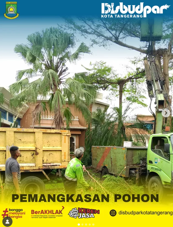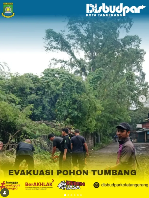 09 Sep 2025 12:06 Cepat Tanggap! Disbudpar Evakuasi Pohon Tumbang di Jalan Gatot Subroto Read More 07 Sep 2025 12:03 Pemkot Tangerang Gelar Pengembangan Kompetensi Bidang Fashion Read More 04 Sep 2025 11:58 Disbudpar Kota Tangerang Ikuti Arak-Arakan Perahu dan Gunungan Maulidan Al-Ittihad 1447 H / 2025 M Read More 04 Sep 2025 11:55 Disbudpar Kota Tangerang Gelar Kegiatan Peningkatan Kompetensi Fashion untuk Dukung Industri Kreatif Lokal Read More 31 Aug 2025 11:53 Disbudpar Kota Tangerang Ikut Sukseskan Aksi Bersih-Bersih Sungai Cisadane dan Penanaman Pohon di Kampung Berkelir Read More 26 Aug 2025 11:51 Disbudpar Kota Tangerang Serahkan Hadiah kepada Pemenang Lomba Video Kreatif Read More 23 Aug 2025 11:48 Kadis Budpar Kota Tangerang Dampingi Wali Kota dalam Pembukaan PERBASI CUP 2025 Read More 21 Aug 2025 11:46 Kadis Budpar Kota Tangerang Dampingi Wali Kota dalam Kegiatan Verifikasi Dokumen KKS Tingkat Nasional 2025 Read More 20 Aug 2025 11:41 Semarak Gowes Kemerdekaan 2025, Rayakan HUT RI ke-80 dengan Semangat Sehat dan Gembira! Read More 12 Aug 2025 11:36 Disbudpar Kota Tangerang Gelar Lomba Video Kreatif Destinasi Wisata, Ajak Masyarakat Promosikan Keindahan Kota Tangerang Read More 11 Aug 2025 11:34 Disbudpar Kota Tangerang Sukses Gelar Kegiatan Pengembangan Kompetensi Fotografer Read More 09 Aug 2025 11:32 Menuju Langit Biru Tangerang, Wujud Komitmen Bersama untuk Udara yang Lebih Bersih Read More 09 Aug 2025 11:30 Disbudpar Kota Tangerang Ikut Sukseskan Kerja Bakti HUT RI ke-80 di Kecamatan Neglasari Read More 07 Aug 2025 11:28 Disbudpar Kota Tangerang Ikuti Kegiatan Promosi Pariwisata dan UMKM di Pendopo Art Center Purworejo Read More 07 Aug 2025 11:26 Antisipasi Pohon Tumbang, Disbudpar Kota Tangerang Lakukan Pemangkasan Rutin di RTH Read More 07 Aug 2025 11:25 Disbudpar Kota Tangerang Hadir di Borobudur Expo 2025, Promosikan Potensi Wisata dan Ekonomi Kreatif Unggulan Read More 06 Aug 2025 11:23 Disbudpar Kota Tangerang Gelar Pelatihan Pengembangan Potensi Fotografer untuk Dongkrak Promosi Pariwisata Read More 05 Aug 2025 11:20 Semarakkan Semangat Kebangsaan, Disbudpar Kota Tangerang Bagikan 100 Bendera Merah Putih di Taman Pramuka Read More 04 Aug 2025 14:14 Pemkot Tangerang Serahkan Manfaat Asuransi Pohon Tumbang, Perkuat Mitigasi Melalui Aplikasi SIGAMPANG Read More 04 Aug 2025 11:15 Disbudpar Kota Tangerang Serahkan Klaim Asuransi Public Liability kepada Warga Terdampak Pohon Tumbang Read More 03 Aug 2025 14:13 Kota Tangerang Raih Penghargaan Kelompok Terbaik dalam Program Penguatan City Branding di Banyuwangi Read More 01 Aug 2025 14:05 OPD Kota Tangerang Gelar Rapat Persiapan Car Free Day Sambut HUT RI ke-80 Read More 30 Jul 2025 14:03 Disbudpar Kota Tangerang Gelar Pelatihan Biola Gratis, Disambut Antusias Peserta dari Berbagai Kalangan Read More 30 Jul 2025 14:01 Disbudpar Kota Tangerang Gelar Pelatihan Biola Tingkat Menengah untuk Asah Bakat Musisi Muda Read More 29 Jul 2025 14:00 Disbudpar Kota Tangerang Gelar Pelatihan Standarisasi Usaha Café dan Restoran untuk Tingkatkan Kualitas Layanan Pariwisata Read More 25 Jul 2025 13:55 Disbudpar Kota Tangerang Kolaborasi dengan Kemenparekraf dan LSP Maestro Indonesia Gelar Sertifikasi Kompetensi Bidang Gastronomi Read More 23 Jul 2025 13:52 Asah Kemampuan Bermain Biola di Pelatihan Biola Tingkat Menengah Kota Tangerang! Read More 22 Jul 2025 13:45 Pelatihan Fotografi Gratis, Yuk Asah Kemampuanmu di Gedung Seni Budaya Kota Tangerang! Read More 21 Jul 2025 13:44 Disbudpar, DPU, dan Kominfo Kota Tangerang Bersinergi Siapkan Partisipasi dalam Bhumandala Award 2025 Read More 18 Jul 2025 13:40 Hotel Santika Regional Tangerang Kolaborasi dengan DLH, Bank Sampah, dan Kang Nong Gelar Aksi Bersih-Bersih Pasar Lama Read More 17 Jul 2025 13:37 Dukung SDM Pariwisata yang Kompeten, Disbudpar Kota Tangerang Beri Dukungan pada Sertifikasi Kompetensi Kerja Read More 17 Jul 2025 13:35 Satgas1016 Gerak Cepat Evakuasi Pohon Tumbang di Kota Tangerang Read More 16 Jul 2025 13:33 Taman Tematik Kota Tangerang Ramai Dikunjungi, Satgas1016 Terus Lakukan Edukasi dan Pengawasan Read More 14 Jul 2025 08:24 Penataan Taman di Eks Pasar Anyar Terus Berlanjut: Wujudkan Ruang Hijau yang Nyaman dan Fungsional Read More 13 Jul 2025 08:22 Kadis Budpar Kota Tangerang Boyke Urif Hermawan Hadiri Pelantikan Pengurus KOSTI: Lestarikan Budaya Lewat Gaya Hidup Sehat Read More 11 Jul 2025 08:20 Pengajian Pegawai Disbudpar Kota Tangerang Bersama KH. Zuhri Fauzi: Empat Pertanyaan di Hari Akhir Read More 10 Jul 2025 14:36 Disbudpar Kota Tangerang x UMT, Sinergi Budaya dan Generasi Muda Read More 09 Jul 2025 14:33 Disbudpar Melakukan Pemeliharaan Rutin, Wujud Komitmen Jaga Keindahan Kota Read More 07 Jul 2025 14:21 Pamumingsolam Hadir Lagi, Warnai Akhir Pekan Warga Tangerang! Read More 06 Jul 2025 08:15 Pegawai Disbudpar Ikuti Jalan Sarungan Festival Al-Azhom 2025 Read More 04 Jul 2025 14:18 Disbudpar Melakukan Pengecatan Kanstin di Jalan TMP Taruna Read More 03 Jul 2025 14:15 Peremajaan Gapura Puspem oleh Tim Dekorasi Kota dan Penebangan Read More 01 Jul 2025 14:05 Kadisbudpar Dampingi Wali Kota Tangerang Kunjungi SMPN 1 untuk Survey Pemangkasan Pohon Read More 30 Jun 2025 14:00 Disbudpar Ikuti Rakor Penilaian Innovative Government Awards (IGA) Bersama Bappeda Read More 28 Jun 2025 13:58 Satgas 1016 Disbudpar Gerak Cepat Evakuasi Pohon Tumbang Read More 26 Jun 2025 13:55 Kunjungan Dosen dan Mahasiswa Institute Pariwisata Trisakti ke Kampung Beksi Batu Sari Read More 26 Jun 2025 13:51 Disbudpar Kota Tangerang Meriahkan Pembukaan Festival Al Adzom 2025 Read More 26 Jun 2025 13:48 Disbudpar Kota Tangerang Melakukan Kegiatan Peningkatan Kualitas Usaha Kuliner di Cibodas Kota Tangerang Read More 21 Jun 2025 13:19 Apel Penertiban Pasar Anyar: Wujud Kolaborasi untuk Kawasan Perdagangan yang Tertib Read More 20 Jun 2025 13:17 Hajatan Budaya Kecamatan Batuceper 2025: Rayakan Kekayaan Tradisi dan Kebersamaan Read More 19 Jun 2025 13:13 Antisipasi Pohon Tumbang, Tim Penebangan Laku