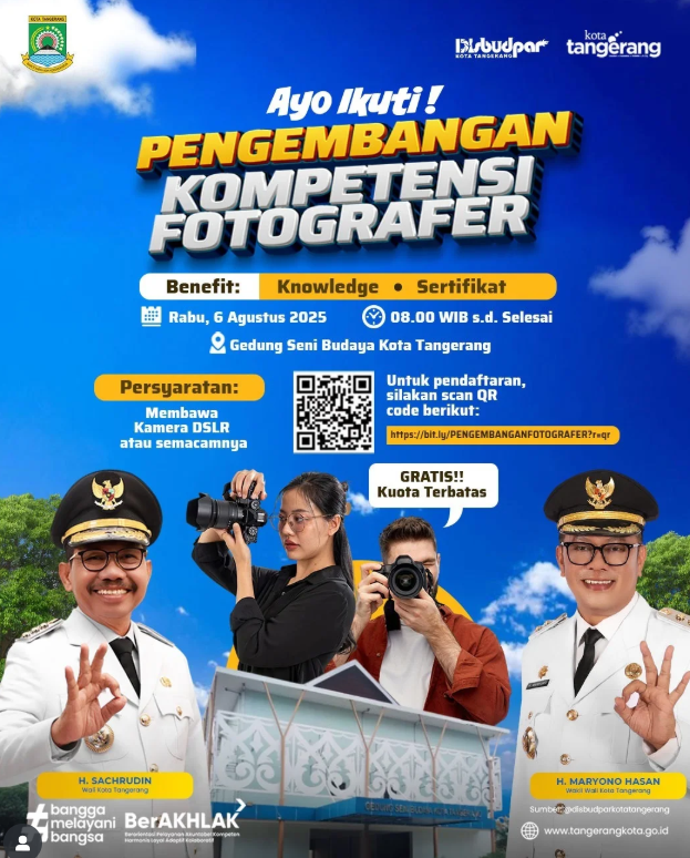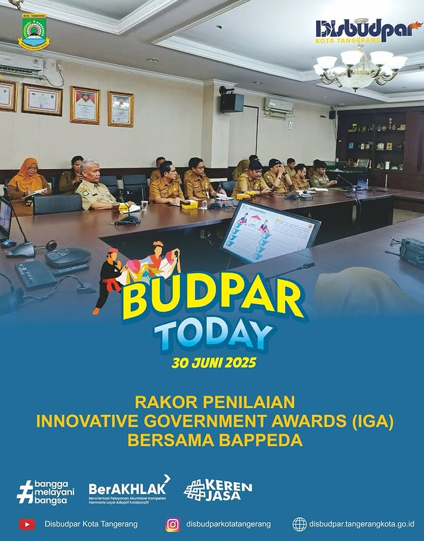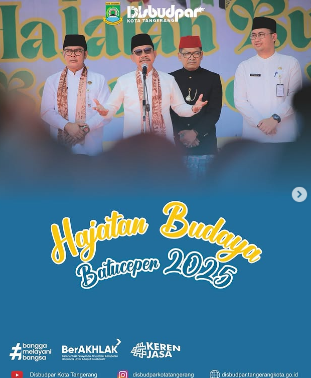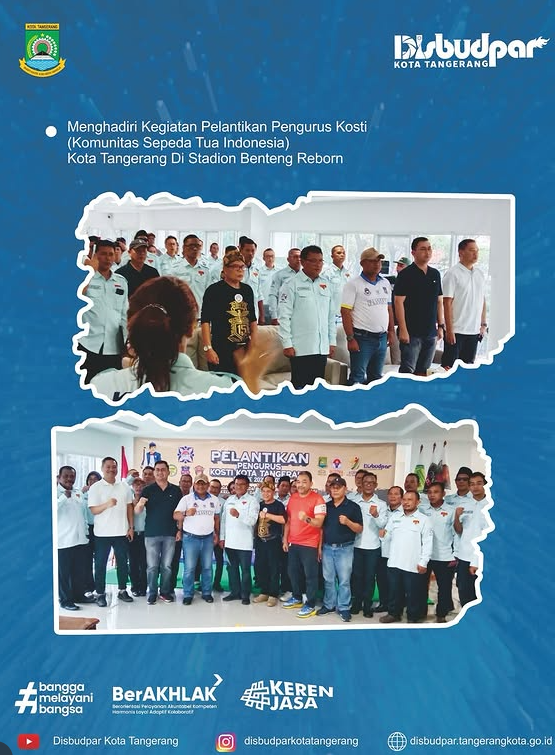 04 Sep 2025 11:55 Disbudpar Kota Tangerang Gelar Kegiatan Peningkatan Kompetensi Fashion untuk Dukung Industri Kreatif Lokal Read More 31 Aug 2025 11:53 Disbudpar Kota Tangerang Ikut Sukseskan Aksi Bersih-Bersih Sungai Cisadane dan Penanaman Pohon di Kampung Berkelir Read More 26 Aug 2025 11:51 Disbudpar Kota Tangerang Serahkan Hadiah kepada Pemenang Lomba Video Kreatif Read More 23 Aug 2025 11:48 Kadis Budpar Kota Tangerang Dampingi Wali Kota dalam Pembukaan PERBASI CUP 2025 Read More 21 Aug 2025 11:46 Kadis Budpar Kota Tangerang Dampingi Wali Kota dalam Kegiatan Verifikasi Dokumen KKS Tingkat Nasional 2025 Read More 20 Aug 2025 11:41 Semarak Gowes Kemerdekaan 2025, Rayakan HUT RI ke-80 dengan Semangat Sehat dan Gembira! Read More 12 Aug 2025 11:36 Disbudpar Kota Tangerang Gelar Lomba Video Kreatif Destinasi Wisata, Ajak Masyarakat Promosikan Keindahan Kota Tangerang Read More 11 Aug 2025 11:34 Disbudpar Kota Tangerang Sukses Gelar Kegiatan Pengembangan Kompetensi Fotografer Read More 09 Aug 2025 11:32 Menuju Langit Biru Tangerang, Wujud Komitmen Bersama untuk Udara yang Lebih Bersih Read More 09 Aug 2025 11:30 Disbudpar Kota Tangerang Ikut Sukseskan Kerja Bakti HUT RI ke-80 di Kecamatan Neglasari Read More 07 Aug 2025 11:28 Disbudpar Kota Tangerang Ikuti Kegiatan Promosi Pariwisata dan UMKM di Pendopo Art Center Purworejo Read More 07 Aug 2025 11:26 Antisipasi Pohon Tumbang, Disbudpar Kota Tangerang Lakukan Pemangkasan Rutin di RTH Read More 07 Aug 2025 11:25 Disbudpar Kota Tangerang Hadir di Borobudur Expo 2025, Promosikan Potensi Wisata dan Ekonomi Kreatif Unggulan Read More 06 Aug 2025 11:23 Disbudpar Kota Tangerang Gelar Pelatihan Pengembangan Potensi Fotografer untuk Dongkrak Promosi Pariwisata Read More 05 Aug 2025 11:20 Semarakkan Semangat Kebangsaan, Disbudpar Kota Tangerang Bagikan 100 Bendera Merah Putih di Taman Pramuka Read More 04 Aug 2025 14:14 Pemkot Tangerang Serahkan Manfaat Asuransi Pohon Tumbang, Perkuat Mitigasi Melalui Aplikasi SIGAMPANG Read More 04 Aug 2025 11:15 Disbudpar Kota Tangerang Serahkan Klaim Asuransi Public Liability kepada Warga Terdampak Pohon Tumbang Read More 03 Aug 2025 14:13 Kota Tangerang Raih Penghargaan Kelompok Terbaik dalam Program Penguatan City Branding di Banyuwangi Read More 01 Aug 2025 14:05 OPD Kota Tangerang Gelar Rapat Persiapan Car Free Day Sambut HUT RI ke-80 Read More 30 Jul 2025 14:03 Disbudpar Kota Tangerang Gelar Pelatihan Biola Gratis, Disambut Antusias Peserta dari Berbagai Kalangan Read More 30 Jul 2025 14:01 Disbudpar Kota Tangerang Gelar Pelatihan Biola Tingkat Menengah untuk Asah Bakat Musisi Muda Read More 29 Jul 2025 14:00 Disbudpar Kota Tangerang Gelar Pelatihan Standarisasi Usaha Café dan Restoran untuk Tingkatkan Kualitas Layanan Pariwisata Read More 25 Jul 2025 13:55 Disbudpar Kota Tangerang Kolaborasi dengan Kemenparekraf dan LSP Maestro Indonesia Gelar Sertifikasi Kompetensi Bidang Gastronomi Read More 23 Jul 2025 13:52 Asah Kemampuan Bermain Biola di Pelatihan Biola Tingkat Menengah Kota Tangerang! Read More 22 Jul 2025 13:45 Pelatihan Fotografi Gratis, Yuk Asah Kemampuanmu di Gedung Seni Budaya Kota Tangerang! Read More 21 Jul 2025 13:44 Disbudpar, DPU, dan Kominfo Kota Tangerang Bersinergi Siapkan Partisipasi dalam Bhumandala Award 2025 Read More 18 Jul 2025 13:40 Hotel Santika Regional Tangerang Kolaborasi dengan DLH, Bank Sampah, dan Kang Nong Gelar Aksi Bersih-Bersih Pasar Lama Read More 17 Jul 2025 13:37 Dukung SDM Pariwisata yang Kompeten, Disbudpar Kota Tangerang Beri Dukungan pada Sertifikasi Kompetensi Kerja Read More 17 Jul 2025 13:35 Satgas1016 Gerak Cepat Evakuasi Pohon Tumbang di Kota Tangerang Read More 16 Jul 2025 13:33 Taman Tematik Kota Tangerang Ramai Dikunjungi, Satgas1016 Terus Lakukan Edukasi dan Pengawasan Read More 14 Jul 2025 08:24 Penataan Taman di Eks Pasar Anyar Terus Berlanjut: Wujudkan Ruang Hijau yang Nyaman dan Fungsional Read More 13 Jul 2025 08:22 Kadis Budpar Kota Tangerang Boyke Urif Hermawan Hadiri Pelantikan Pengurus KOSTI: Lestarikan Budaya Lewat Gaya Hidup Sehat Read More 11 Jul 2025 08:20 Pengajian Pegawai Disbudpar Kota Tangerang Bersama KH. Zuhri Fauzi: Empat Pertanyaan di Hari Akhir Read More 10 Jul 2025 14:36 Disbudpar Kota Tangerang x UMT, Sinergi Budaya dan Generasi Muda Read More 09 Jul 2025 14:33 Disbudpar Melakukan Pemeliharaan Rutin, Wujud Komitmen Jaga Keindahan Kota Read More 07 Jul 2025 14:21 Pamumingsolam Hadir Lagi, Warnai Akhir Pekan Warga Tangerang! Read More 06 Jul 2025 08:15 Pegawai Disbudpar Ikuti Jalan Sarungan Festival Al-Azhom 2025 Read More 04 Jul 2025 14:18 Disbudpar Melakukan Pengecatan Kanstin di Jalan TMP Taruna Read More 03 Jul 2025 14:15 Peremajaan Gapura Puspem oleh Tim Dekorasi Kota dan Penebangan Read More 01 Jul 2025 14:05 Kadisbudpar Dampingi Wali Kota Tangerang Kunjungi SMPN 1 untuk Survey Pemangkasan Pohon Read More 30 Jun 2025 14:00 Disbudpar Ikuti Rakor Penilaian Innovative Government Awards (IGA) Bersama Bappeda Read More 28 Jun 2025 13:58 Satgas 1016 Disbudpar Gerak Cepat Evakuasi Pohon Tumbang Read More 26 Jun 2025 13:55 Kunjungan Dosen dan Mahasiswa Institute Pariwisata Trisakti ke Kampung Beksi Batu Sari Read More 26 Jun 2025 13:51 Disbudpar Kota Tangerang Meriahkan Pembukaan Festival Al Adzom 2025 Read More 26 Jun 2025 13:48 Disbudpar Kota Tangerang Melakukan Kegiatan Peningkatan Kualitas Usaha Kuliner di Cibodas Kota Tangerang Read More 21 Jun 2025 13:19 Apel Penertiban Pasar Anyar: Wujud Kolaborasi untuk Kawasan Perdagangan yang Tertib Read More 20 Jun 2025 13:17 Hajatan Budaya Kecamatan Batuceper 2025: Rayakan Kekayaan Tradisi dan Kebersamaan Read More 19 Jun 2025 13:13 Antisipasi Pohon Tumbang, Tim Penebangan Lakukan Pemangkasan Rutin di RTH Kota Tangerang Read More 18 Jun 2025 13:12 Tindak Vandalisme Masih Terjadi, Tim Dekorasi Kota Lakukan Penanganan di Kolong Tol Cipondoh Read More 18 Jun 2025 13:10 Satgas 1016 Gerak Cepat Tangani Pohon Tumbang di Wilayah Kota Tangerang Read More 18 Jun 2025 13:08 Pelatihan Olah Vokal 20