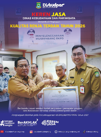 30 Jun 2025 14:00 Disbudpar Ikuti Rakor Penilaian Innovative Government Awards (IGA) Bersama Bappeda Read More 28 Jun 2025 13:58 Satgas 1016 Disbudpar Gerak Cepat Evakuasi Pohon Tumbang Read More 26 Jun 2025 13:55 Kunjungan Dosen dan Mahasiswa Institute Pariwisata Trisakti ke Kampung Beksi Batu Sari
